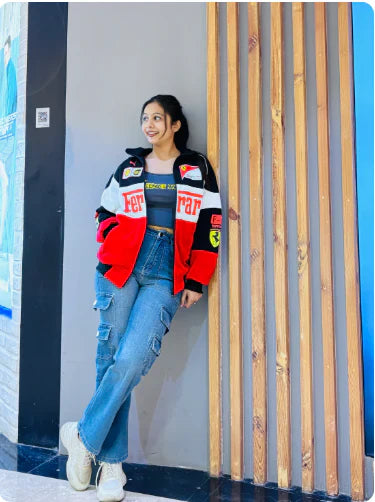 Tri-Colour Ferrari F1 Vintage Racer Jacket | Classic Racing Style l Unisex
